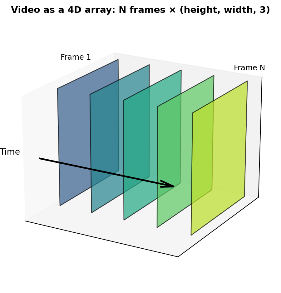 # Simulate video frames as colored images (224x224 RGB)